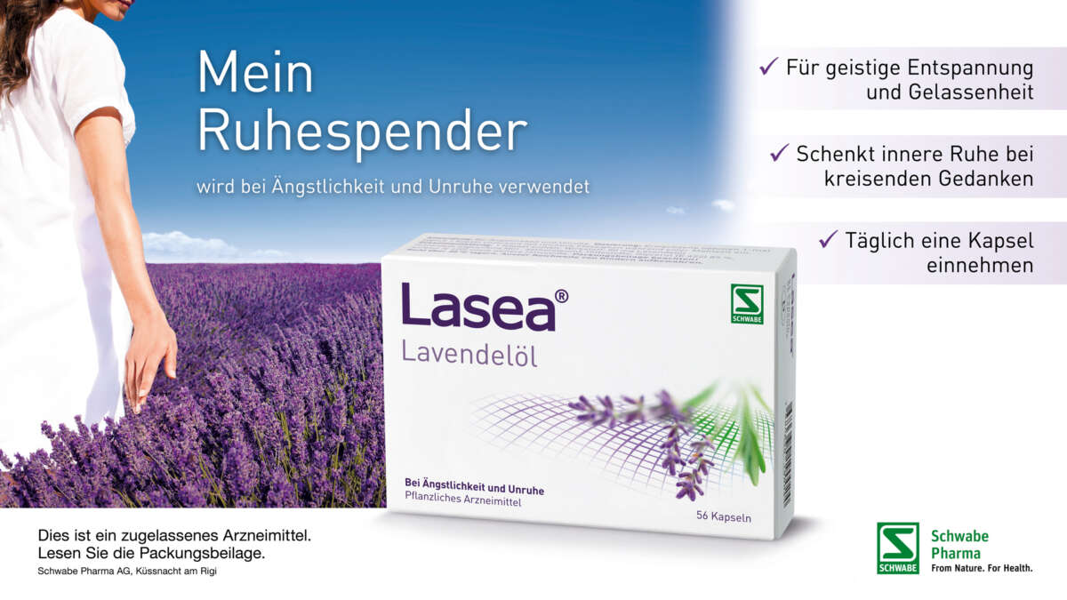 Tagesabhängige psychische und mentale Belastung und innere Unruhe können sich durch vielfältige körperliche oder psychische Symptome bemerkbar machen. Hier kann das pflanzliche Arzneimittel Lasea mit der Wirkung des Lavendels helfen. Lasea unterstützt, um sich im Alltag wieder ausgeglichener, souveräner und gelassener zu fühlen, da es bei innerer Unruhe und kreisenden Gedanken verwendet wird.
