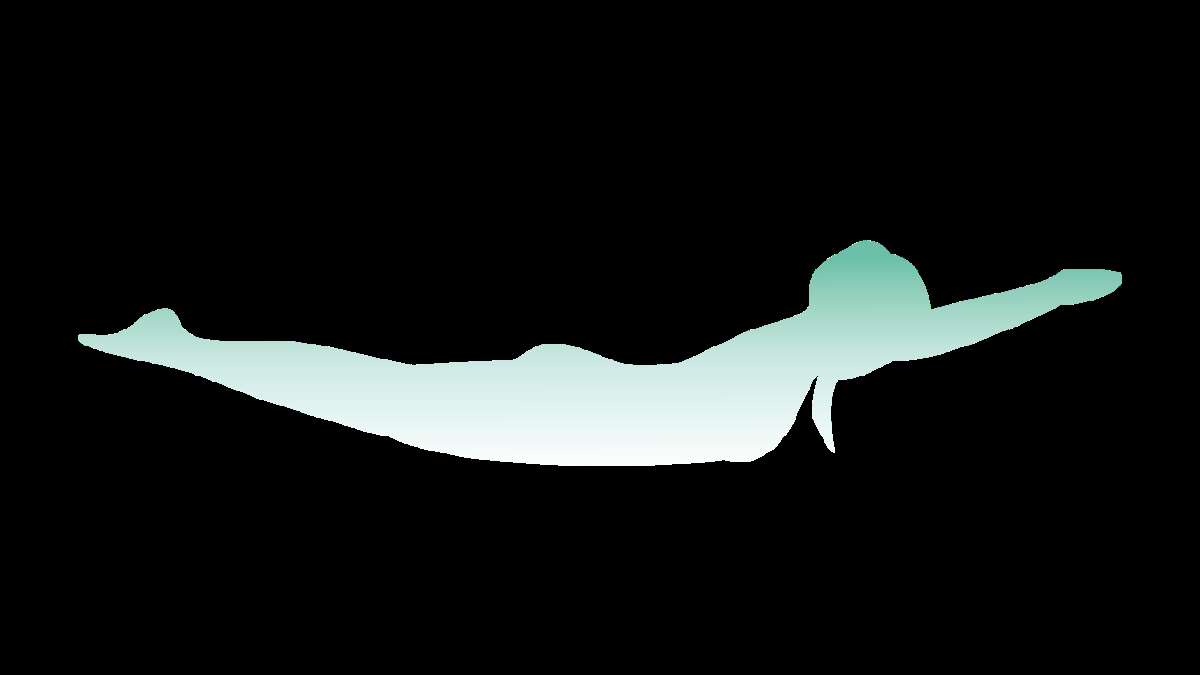 - Flach auf dem Bauch liegen, Arme und Beine gestreckt.
